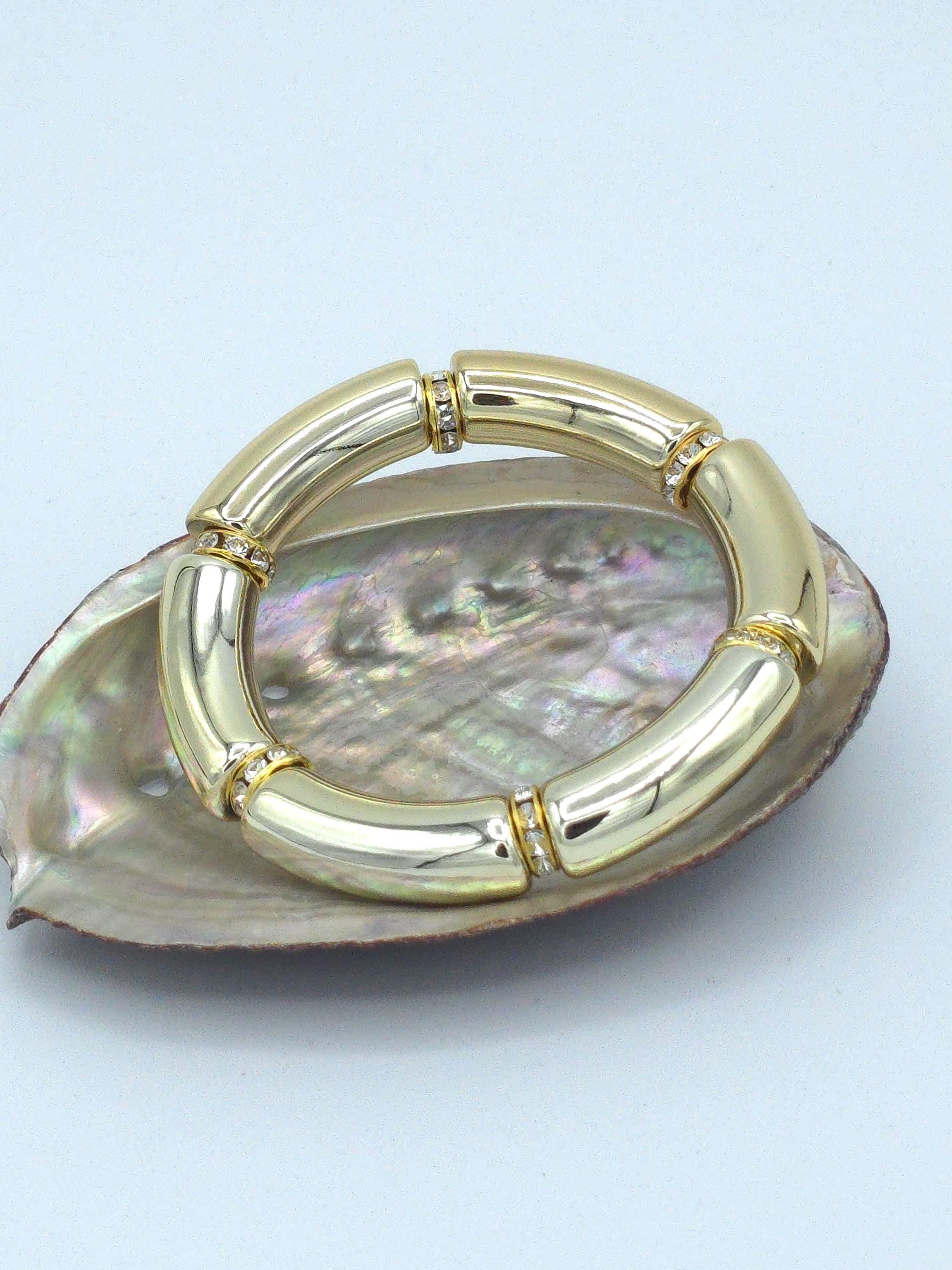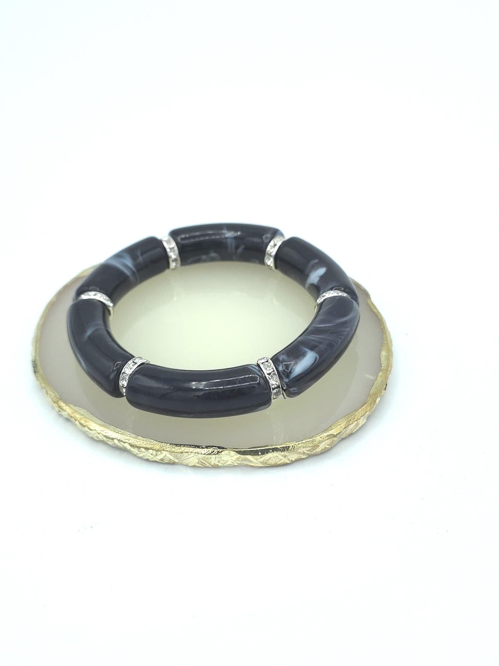 Bold, lightweight, and unapologetically stylish. This chunky acrylic tube bracelet is designed to stand out with rich color combinations and luxe rhinestone spacers. A perfect statement piece that elevates everyday outfits or completes a dressed-up look.