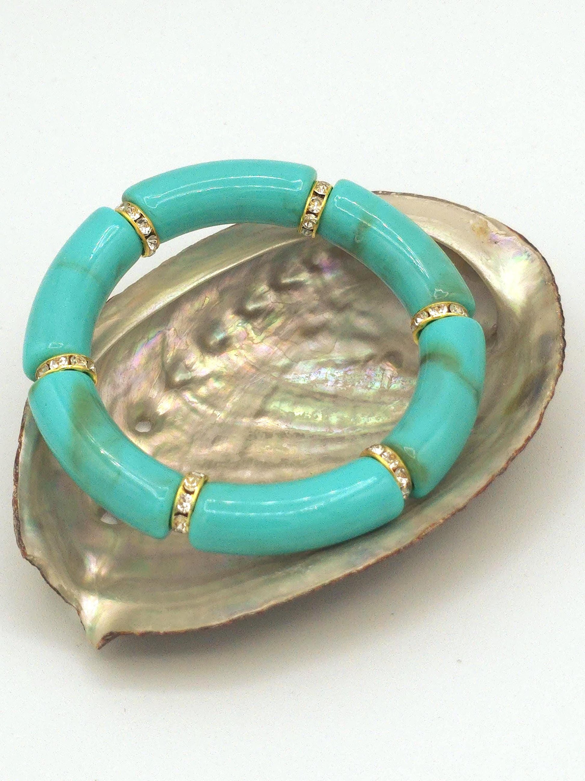 Chunky Acrylic Tube Bracelet | Colorful Statement Stretch Bracelet | Beaded Luxe Jewelry