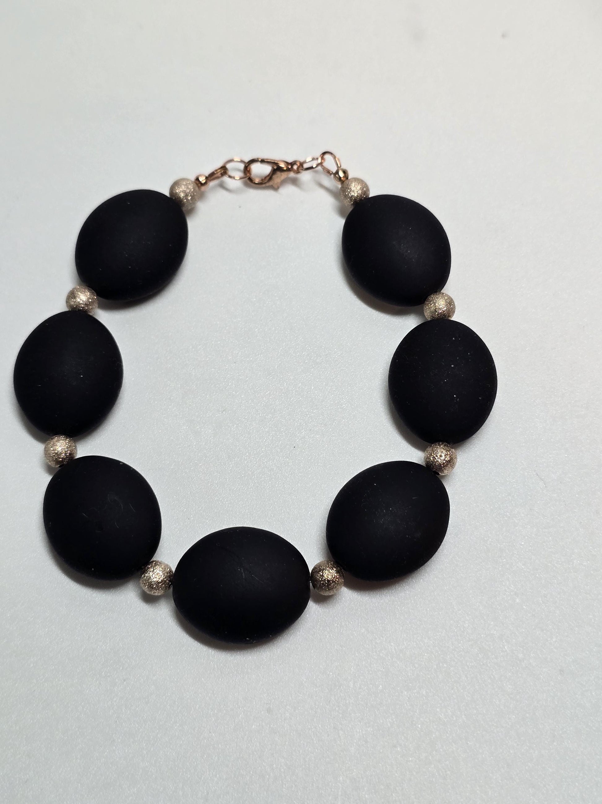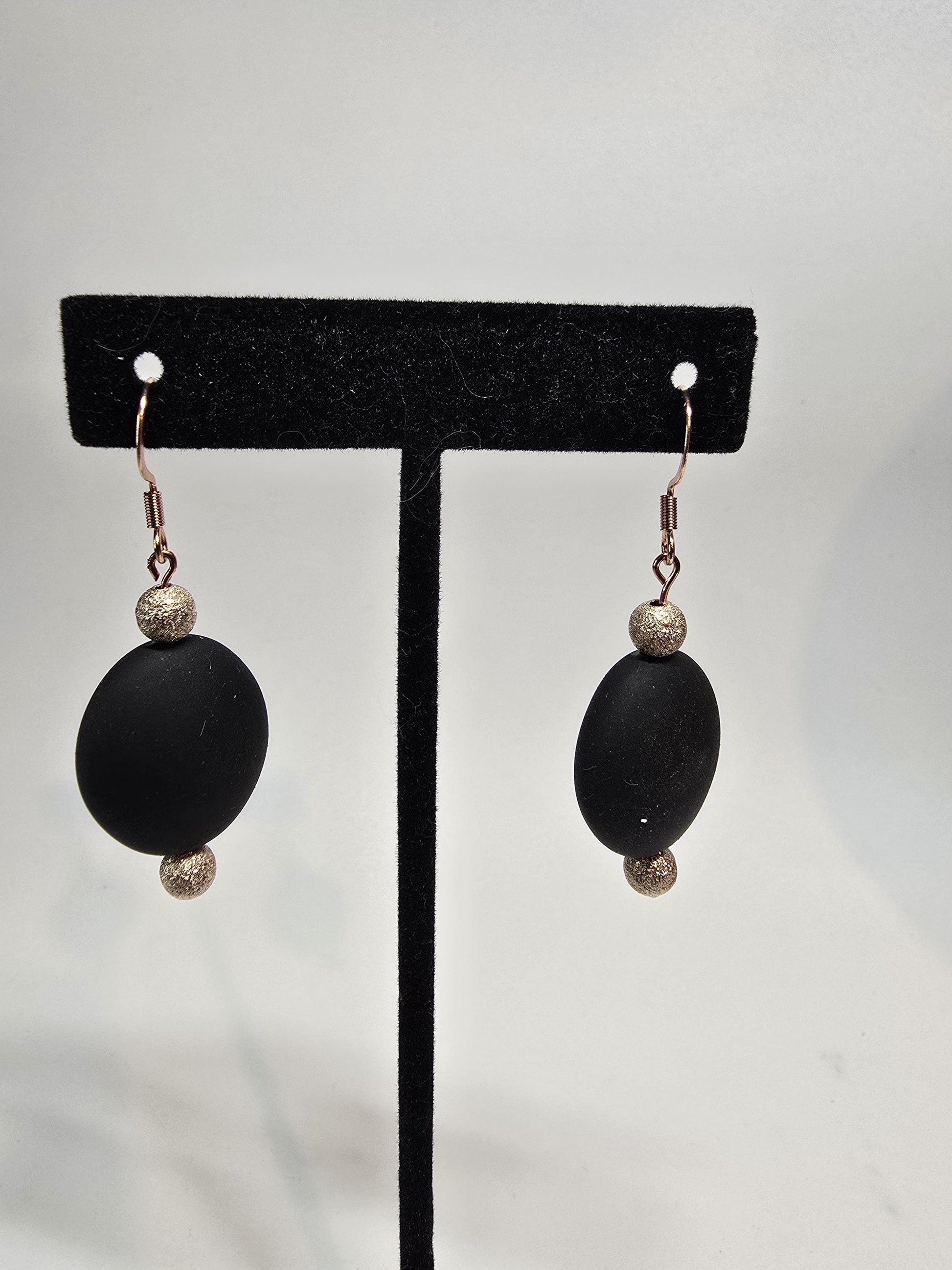 • Matte black oval beads