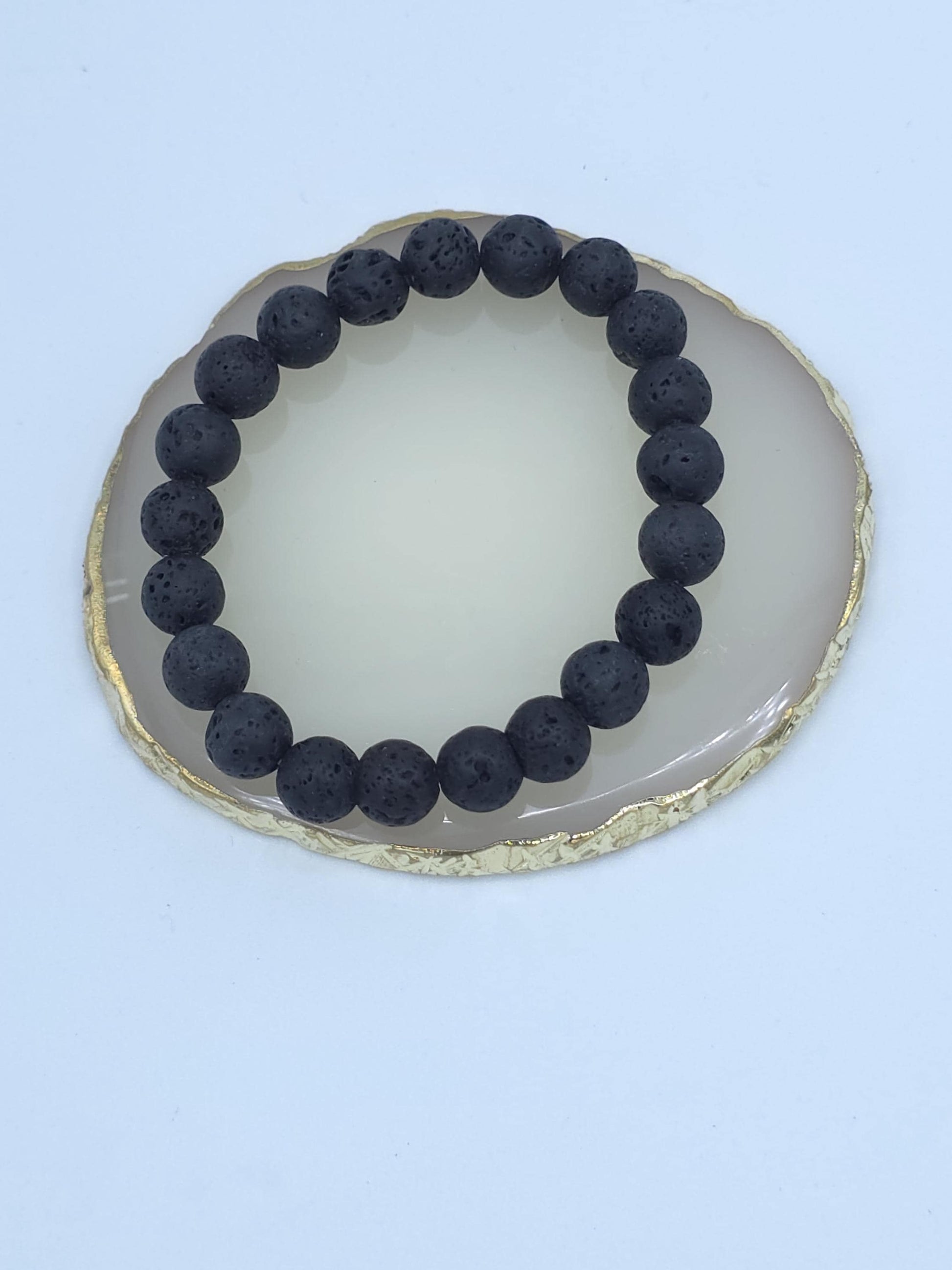 Matte Black Lava Stone Bracelet Stack | Unisex Stretch Jewelry